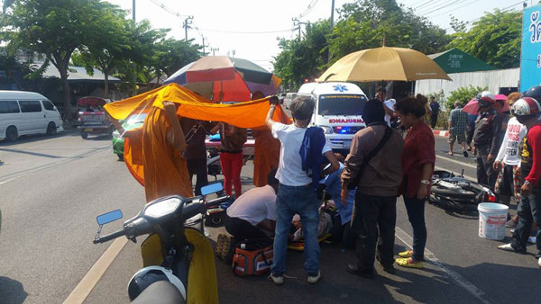 อุบัติเหตุดังกล่าวเป็นเหตุการณ์จักรยานยนต์เฉี่ยวชนกับแท็กซี่