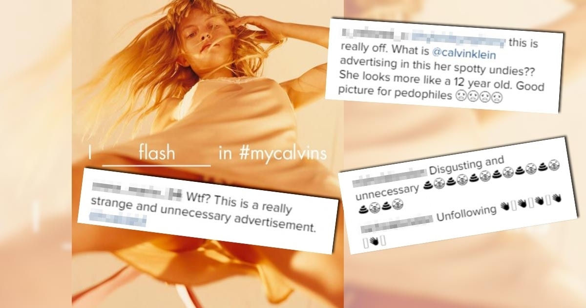 หลังจากเมื่อไม่นานมานี้ คาลวิน ไคลน์ (Calvin Klein) แบรนด์แฟชั่นชื่อดัง ได้ปล่อยภาพโฆษณาเสื้อผ้าคอลเลคชั่นใหม่สำหรับฤดูใบไม้ผลิ โปรโมทผ่านทางอินสตาแกรม calvinklein ก็กลายเป็นกระแสขึ้นมาทันที แต่ไม่ใช่กระแสดี ๆ ที่ชื่นชมเรื่องเสื้อผ้า กลับเป็นดราม่าร้อน ๆ โดนวิจารณ์ยับ โดยเมื่อวันที่ 11 พฤษภาคม 2559 เว็บไซต์เดลี่เมล มีรายงานเปิดเผยว่า ชาวโซเชียลออนไลน์ต่างพากันกระหน่ำเข้าไปคอมเม้นท์ที่ใต้รูปโฆษณา ซึ่งเป็นรูปของ คลารา คริสเตน นางแบบสาวชาวเดนมาร์กวัย 22 ปี ที่พรีเซ็นต์สินค้าในมุมถูกถ่ายช้อนใต้กระโปรง โชว์ให้เห็นกางเกงในและแก้มก้นอย่างชัดเจน แถมยังมีแคปชั่นชวนวาบหวิว "I flash in #mycalvins" (ฉันโชว์โป๊ใน #mycalvins) อีกด้วย