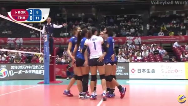 วอลเลย์บอลหญิง ทีมชาติไทย พบ เกาหลีใต้ รอบคัดเลือกโอลิมปิก วันนี้ (21 พฤษภาคม 2559) ไทย ชนะ เกาหลีใต้ 3-2 เซต ด้วยคะแนน 19-25, 22-25, 29-27, 26-24 และ 15-12