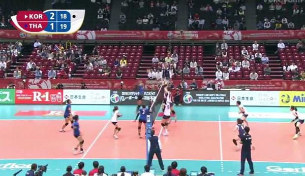 ส่วนผลการแข่งขันในเซตที่ 1 ไทยเป็นฝ่ายคว้าแต้มแรกก่อน 1-0 จากนั้นเกาหลีใต้ทำคะแนนตาม 1-1 ก่อนที่การแข่งขันจะเป็นไปอย่างลุ้นระทึกโดยมีไทยทำคะแนนนำ 5-3 แต่เกาหลีใต้ยังคงทำคะแนนไล่ตามมาได้ทันทุกครั้ง กระทั่งขึ้นนำที่ 6-7 ซึ่งไทยก็ยังสามารถทำคะแนนตามได้ติด ๆ คู่คี่กันจนไล่ทันที่ 9-9 แต่ก็ยังถูกขึ้นนำไปอีกครั้งและทิ้งห่างไป 11-17 นำไทย 6 คะแนนก่อนที่ไทยจะเริ่มทำคะแนนได้อีกครั้ง 12-17 ซึ่งเกาหลีใต้ก็ยังเล่นอย่างเต็มที่ ทิ้งนำไทย 14-20 แต่ผู้เล่นทีมไทยยังสู้ทำคะแนนตามมา 16-20 ซึ่งเกาหลีใต้ยังคงทิ้งห่างไปอีกครั้งคว้าเซตพ้อยน์ได้ก่อน และปิดเกมที่ 19-25 นำไทย 0-1 เซต