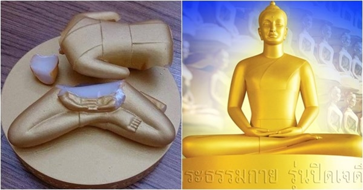 หนุ่มโพสต์เฟซบุ๊กชวนอึ้ง หลังทำพระพุทธรูปธรรมกายตกแตก เผยให้เห็นเนื้อเรซิ่นภายใน คาดน่าจะทำจากวัสดุราคาถูกตามท้องตลาด แต่ให้เช่าบูชาถึงองค์ละ 15,000 บาท ด้านวัดพระธรรมกายแถลง องค์จริงที่ทำจากซิลิกอนบอลจะถูกประดับที่มหาเจดีย์ ส่วนองค์ที่ให้สาวกบูชานั้นทำจากเรซิ่น