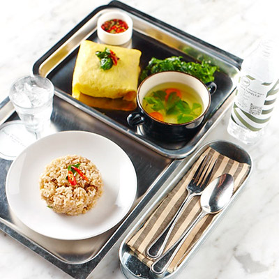 ความโดดเด่นจะอยู่ที่ภาชนะที่ใช้เสริฟที่มีเอกลักษณ์ออกแบบและผลิตเองของร้าน