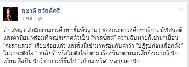 โดยข้อความในเฟซบุ๊กของนายสุชาติ สุชาติ
