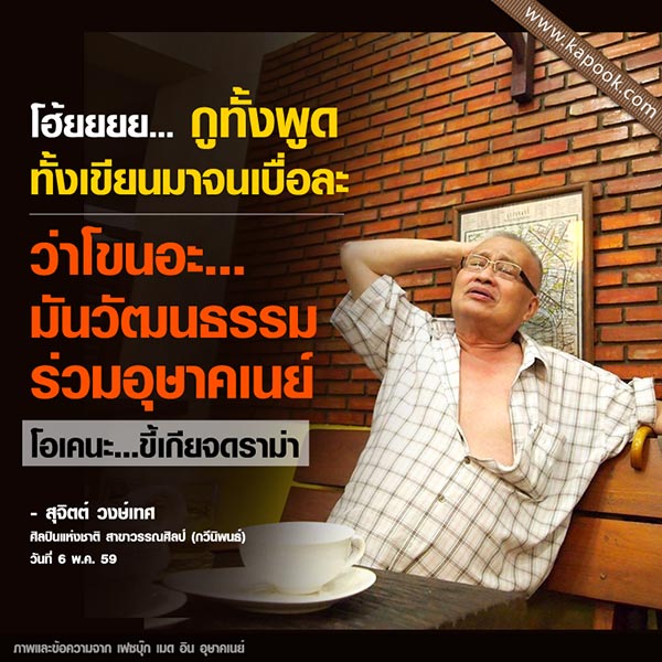 ขณะที่ เพจ เมด อิน อุษาคเนย์ ได้นำข้อความของ นายสุจิตต์ วงษ์เทศ นักเขียนรางวัลศรีบูรพา ทที่ออกมากล่าวถึงประเด็นนี้ว่า "โฮ้ยยยย กูทั้งพูดทั้งเขียนมาจนเบื่อละ ว่าโขนอะ มันวัฒนธรรมร่วมอุษาคเนย์ โอเคนะ ขี้เกียจดราม่า" (อุษาคเนย์ คือ เอเชียอาคเนย์ หรือเอเชียตะวันออกเฉียงใต้)