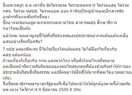 วันนี้ (8 มิถุนายน 2559) ผู้สื่อข่าวรายงานว่า นายแพทย์เหวง โตจิราการ อดีต ส.ส. บัญชีรายชื่อพรรคเพื่อไทย และแกนนำ นปช. ได้โพสต์ข้อความผ่านเฟซบุ๊กส่วนตัว นพ.เหวง โตจิราการ ยก 7 เหตุผล โต้กลับนายกรัฐมนตรี กรณี นปช. จะตั้งศูนย์ปราบโกงประชามติ ยันไม่ต้องการล้ม คสช. แต่เป็นหน้าที่รับผิดชอบของคนไทยทุกคนที่ต้องทำให้การลงประชามติบริสุทธิ์