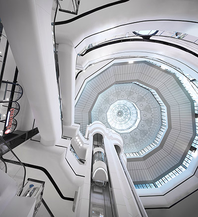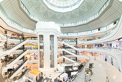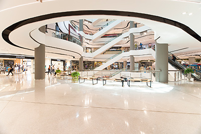 หรือ Focal Point ที่โดดเด่น ร่วมกับการใช้หลังคา Skylightเพื่อให้แสงธรรมชาติเข้ามาในศูนย์ได้อย่างเต็มที่