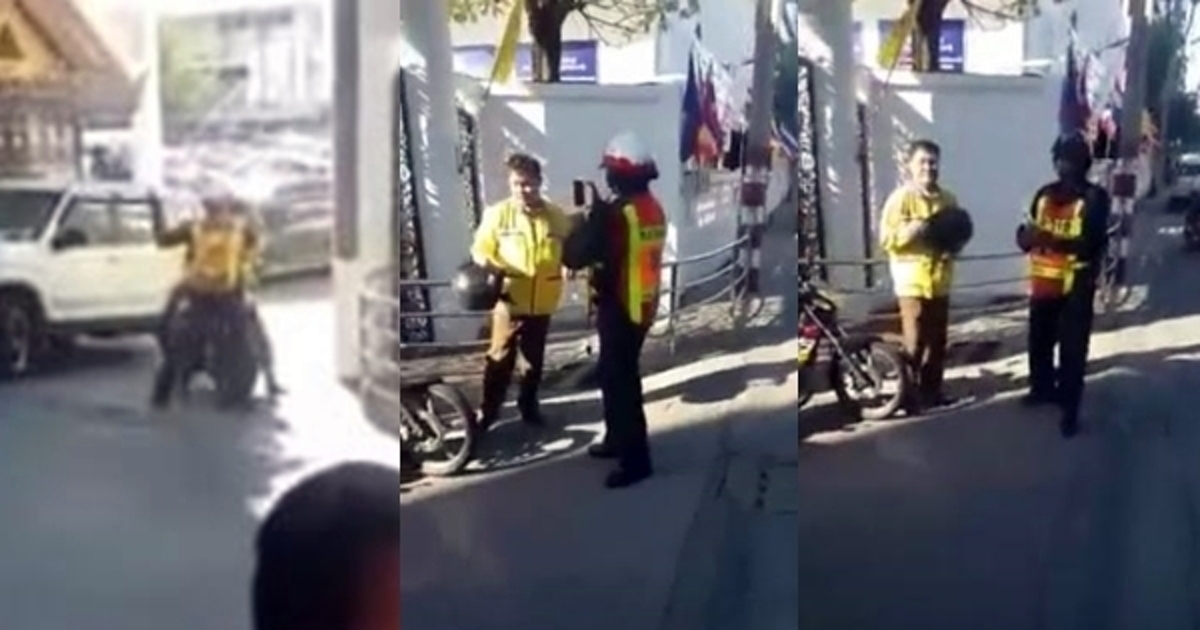ว่อนโลกโซเซียล ! คลิปแฉอาสาจราจรโชว์กร่างตบหน้าคนขี่รถจักรยานยนต์ ก่อนจะใช้โทรศัพท์ถ่ายคลิปซ้ำ คู่กรณีโวย "ถ่ายด้วยตอนตบผม" ชาวเน็ตรุมสับเละ จี้ตรวจสอบสังกัด
