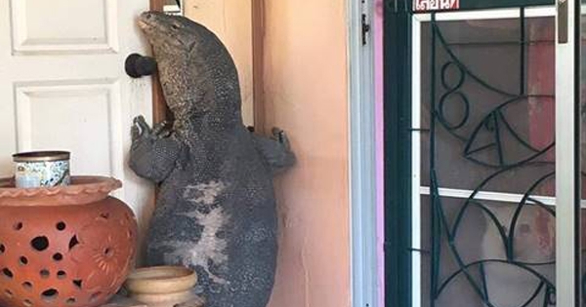 เจ้าของบ้านยัน รูปตัวเงินตัวทองยักษ์ แวะมาทักทายถึงบ้าน เป็นภาพจริง ไม่มีตัดต่อ เผยเจอบ่อย ไม่กลัว ตั้งชื่อให้ว่า ซีลีน่า ด้านคอหวยถามหาเลขที่บ้าน