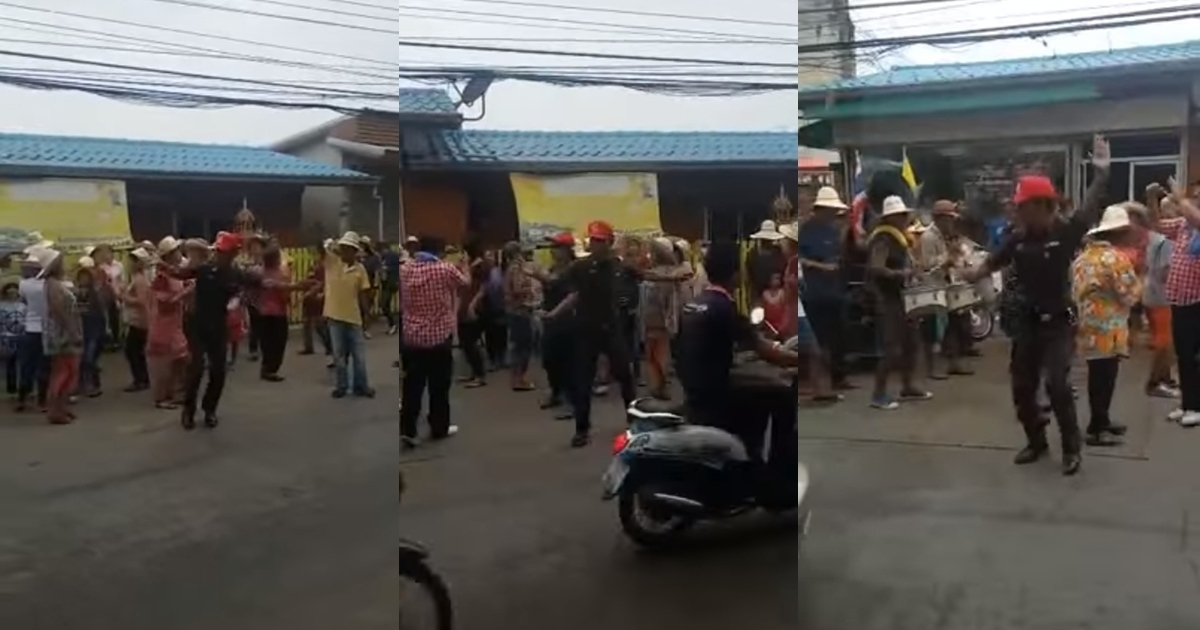 โลกออนไลน์แชร์คลิปเรียกร้อยยิ้ม เมื่อตำรวจห้ามใจไม่ไหวโชว์สเต็ปเต้นกระจายขณะปฏิบัติงานอำนวยความสะดวกขบวนแห่นาค ที่ราชบุรี