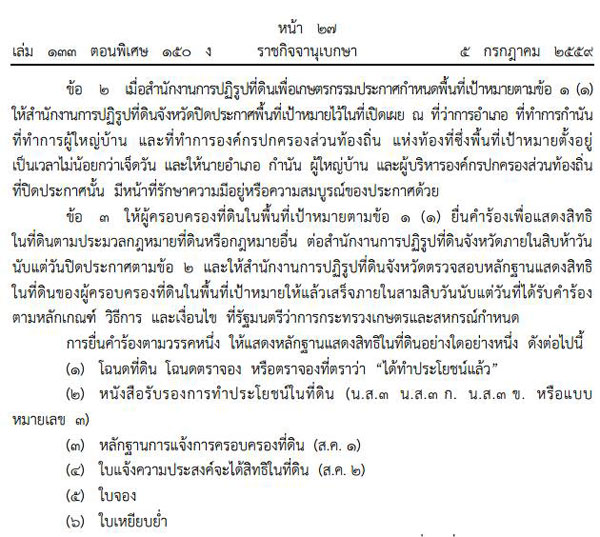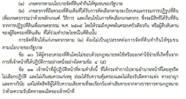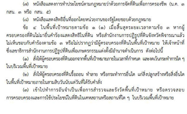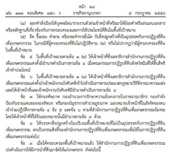 อย่าง ไรก็ดีให้บุคคลมารายงานตัวต่อเจ้าหน้าที่หรือส่งมอบเอกสารหลักฐานเกี่ยวกับการครอบครองและการใช้ประโยชน์ที่ดินในพื้นที่เป้าหมาย รวมทั้งยึดคืนที่ดินที่ไม่ได้ทำประโยชน์ตามการปฏิรูปที่ดินเพื่อเกษตรกร