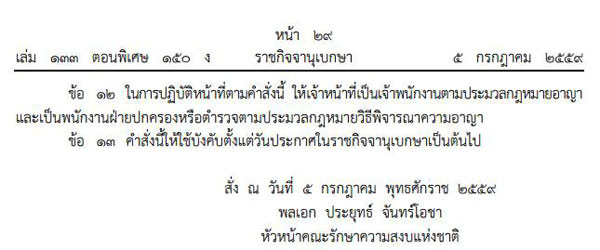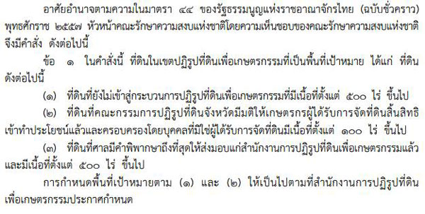 ราชกิจจานุเบกษา ประกาศคำสั่ง พล.อ. ประยุทธ์ หัวหน้า คสช. ประกาศใช้ มาตรา 44 ยึดที่ดิน สปก. ที่ถูกครอบครองโดยผิดกฎหมาย