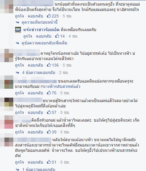 เมื่อวันที่ 6 มิถุนายน 2559 เฟซบุ๊ก แจ้งข่าวชาวร้อยเอ็ด มีการเขียนข้อความในงานฌาปนกิจนางสาวจุฬารัตน์ โทวรรณา หรือครูอิ๋ว ผู้ล่วงลับ ที่วัดบ้านบุ่งค้า จ.ร้อยเอ็ด ว่า เรื่องแปลกในงานที่เกิดขึ้นคือ มีนกน้อยตัวหนึ่งคอยกระโดดไปมารอบงาน ไม่กลัวคน แต่ก็ไม่ยอมให้ใครจับ อีกทั้งการกระโดดนั้น คอยกระโดดตามคุณแม่เวลาเดินผ่าน