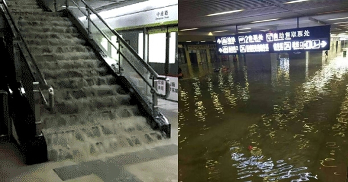 เผยภาพเมืองอู่ฮั่นในจีนกลายเป็นทะเลทั้งเมือง หลังฝนตกหนัก-น้ำท่วม สถานีรถไฟใต้ดินก็กลายเป็นน้ำตก น้ำไหลเข้าท่วมทั้งสถานี เมื่อวันที่ 7 กรกฏาคม 2559 เว็บไซต์เซี่ยงไฮ้อิสต์ เผยภาพน้ำท่วมในเมืองอู่ฮั่น มณฑลหูเป่ย์ของจีน ระบุตอนนี้สถานการณ์ยังไม่คลี่คลาย เมืองทั้งเมืองกลายเป็นทะเล รวมถึงสถานีรถไฟใต้ดินก็ยังไม่รอด น้ำทะลักไหลไปตามบันไดสถานีจนกลายเป็นน้ำตก ภายในก็มีน้ำแทรกซึมอยู่ทุกพื้นที่