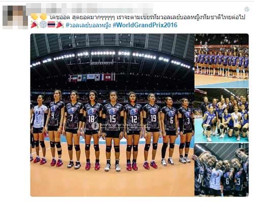 จบการแข่งขันเป็นที่เรียบร้อยแล้ว ศึกวอลเลย์บอลหญิง เวิลด์กรังด์ปรีซ์ 2016 ในวันที่ 10 กรกฎาคม 2559 ระหว่าง ทีมชาติไทย กับ จีน แม้จะจบเกมด้วยอันดับที่ 6 ของการแข่งขัน หลังวอลเลย์บอลหญิงไทย พ่าย จีน 3 เซตรวด ด้วยคะแนน 23-25, 23-25 และ 12-25