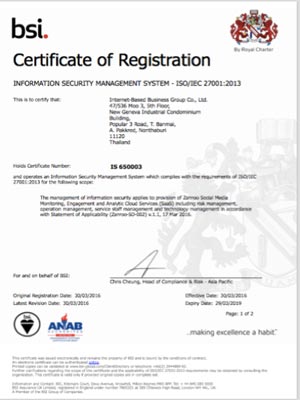 วันนี้ Zanroo Limited ได้สร้าง มาตรฐานใหม่ ของวงการ Social Listening Tool และการทำงานทางด้าน Social Media Marketing ด้วยการคว้า ISO 27001 มาตรฐานระดับโลก ทางด้าน Information Security Management System หรือ การบริหารจัดการมาตรฐานความปลอดภัยของข้อมูล เป็นบริษัท MarTech ประเทศแรกและประเทศเดียวในแถบอินโดจีน (Indochina)