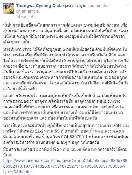 ภาพจาก เฟซบุ๊ก Thungwa Cycling Club ทุ่งหว้า สตูล.