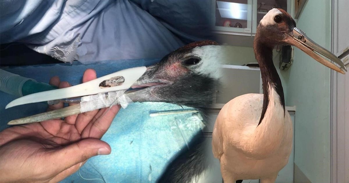 นกกระเรียนปากหักโชคดี ได้เจ้าหน้าที่สวนสัตว์ช่วยสร้างปากเทียมใหม่ให้จากเครื่องพิมพ์ 3 มิติ หลังสู้กับนกตัวอื่นจนจะงอยปากบนหัก กินอาหารไม่ได้จนเกือบตาย
