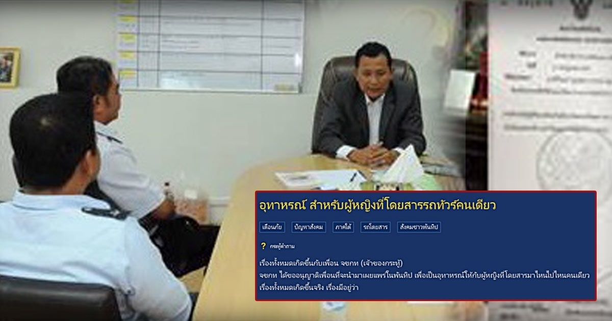 จากกรณีที่หญิงคนหนึ่งได้ตั้งกระทู้เล่าว่าได้นั่งรถทัวร์โดยสารเพื่อเดินทางไปต่างจังหวัดเพียงลำพัง ซึ่งพนักงานแจ้งว่าตั๋วที่จะส่งบริษัทชำรุดและออกตั๋วใหม่ให้โดยเป็นลายมือของพนักงาน ซึ่งไปซ้ำกับที่นั่งที่มีชายคนหนึ่งนั่งอยู่ก่อนแล้ว ก่อนที่ชายคนดังกล่าวจะลุกไปนั่งที่อื่น เมื่อรถแล่นเข้าเขต จ.ชุมพร พนักงานบนรถก็ได้เรียกให้เธอลงไปข้างล่างด้วยน้ำเสียงข่มขู่หลายครั้ง และมีรถกระบะสีดำมาจอดเทียบรถทัวร์ด้วย พอถึงจุดหมายเธอได้ถามคนขับรถ แต่กลับไม่ได้รับคำตอบ ก่อนรีบออกรถไป [อ่านข่าว : สาวนั่งรถทัวร์ผวา เจอพนักงานรถเรียกลงมาตอนดึก ๆ วินาทีที่กลัวสุดชีวิต คลิก]