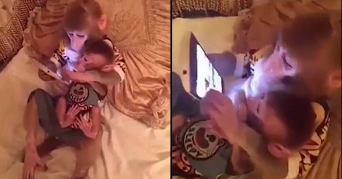 คลิปวิดีโอที่ว่านี้ เป็นคลิปของเจ้าลิงจ๋อแม่-ลูกคู่หนึ่งที่ถูกจับแต่งตัวใส่ชุดเหมือนคน แล้วให้ไปนอนอยู่บนเตียง โดยตัวแม่นั้นโอบกอดลูกน้อยไว้ในอ้อมแขนข้างหนึ่ง ส่วนมืออีกข้างก็ใช้นิ้วจิ้มหน้าจอเลื่อนดูคลิปวิดีโอนู่นนี่ไปมา ในขณะที่ลูกลิงจ๋อก็นอนดูอยู่บนอกอย่างเพลิน ถอดแบบท่าทางของมนุษย์มาเป๊ะเลย