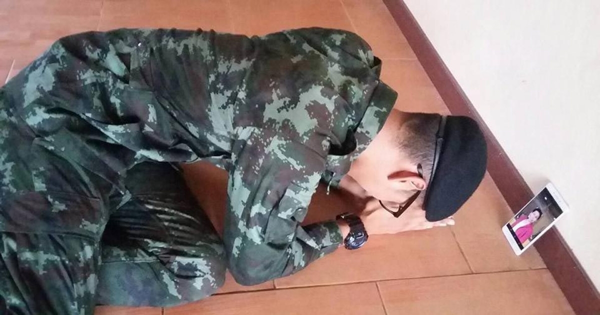 ทหารหนุ่มโพสต์ภาพซึ้ง ก้มกราบแม่ผ่านรูปในมือถือ เผยทำได้แค่นี้เพราะแม่อยู่ต่างประเทศ ด้านชาวเน็ตแห่ให้กำลังใจล้นหลาม