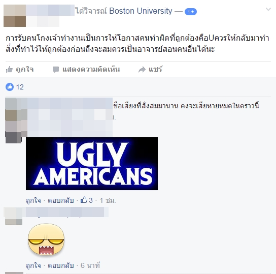 ล่าสุด (25 สิงหาคม 2559) ผู้สื่อข่าวรายงานว่า จากการตรวจสอบเรตติ้งเฟซบุ๊ก BostonUniversity ซึ่งขณะนี้เรตติ้งเหลือเพียงแค่ 2.5 ดาว (ข้อมูล ณ เวลา 11.26 น. วันที่ 25 สิงหาคม) หลังมีชาวเน็ตไทยเข้าไปกดคะแนน 1 ดาว กันเป็นจำนวนมาก พร้อมทั้งยังมีการโพสต์ข้อความแสดงความเห็นตำหนิทางมหาวิทยาลัยบอสตัน ที่มีการรับ น.ส.ดลฤดี เข้าเป็นอาจารย์สอนอีกด้วย