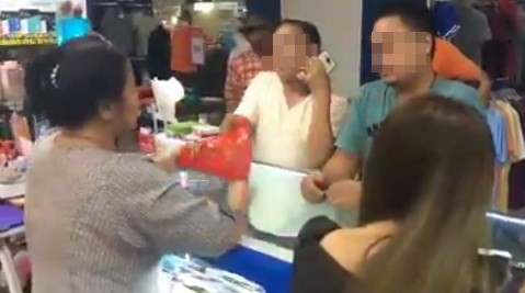จากนั้นแม่ค้าก็ไปโวยวายจนกลุ่มชายที่อ้างว่าเป็นตำรวจถอนหนี และก็เกิดเหตุการณ์มะรุมมะตุ้มชุลมุนกันยกใหญ่ แม่ค้าตะโกนด่าเสียงดังว่า "มึงหลอกกูเหรอ" มีการผลักแม่ค้า ส่วนพนักงานในร้านของแม่ค้าก็รุมเตะชายคนดังกล่าว จนวิ่งหนีออกจากห้างไป พร้อมกับทิ้งรองเท้าไว้ดูต่างหน้า