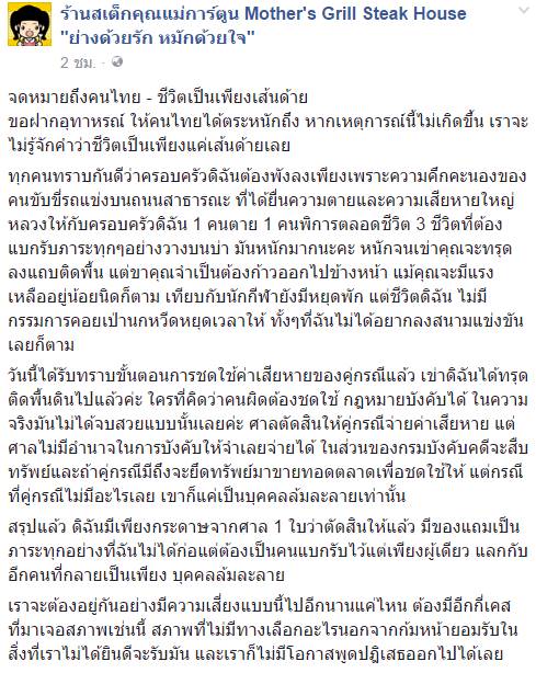 ภาพและข้อมูลจาก เฟซบุ๊ก ร้านสเต็กคุณแม่การ์ตูน Mother's Grill Steak House "ย่างด้วยรัก หมักด้วยใจ"