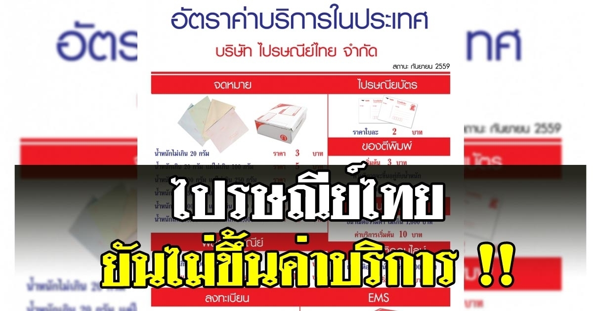 จากกรณีมีกระแสข่าวว่า บริษัท ไปรษณีย์ไทย จำกัด เตรียมขอปรับขึ้นราคาค่าบริการไปรษณีย์หลังไม่ได้ปรับขึ้นมาร่วม 13 ปี เนื่องจากประสบภาวะขาดทุนนั้น [อ่านข่าว : ไปรษณีย์ไทย จ่อปรับขึ้นค่าบริการ หลังขาดทุนหนัก-ไม่ได้ขึ้นราคามา 13 ปี]