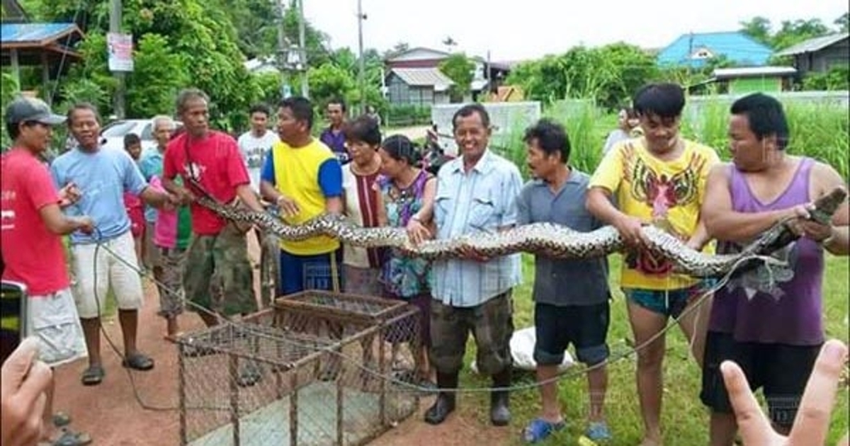 ชาวบ้านหนองหาร จ.สกลนคร จับงูเหลือมใหญ่ยักษ์ 5 เมตร ได้บนเกาะที่มีการเลี้ยงหมูป่า เผยหมูบนเกาะหายไปปีละหลายสิบตัว คาดตกเป็นอาหารงู