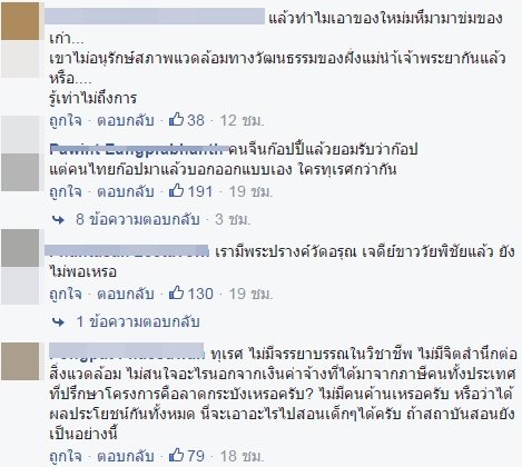 ทั้งนี้ เพจเฟซบุ๊ก Friends of the River จึงวอนคัดค้านการก่อสร้างสถาปัตยกรรมที่เลียนแบบต่างชาติ ที่ถือเป็นการทำลายรากฐานและความภาคภูมิใจของไทย