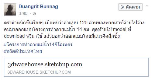 สถาปนิกและนักออกแบบชื่อดังชาวไทย ได้โพสต์ข้อความผ่าน เฟซบุ๊ก Duangrit