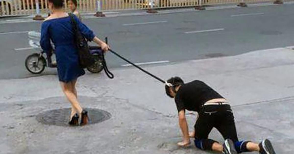 รายงานจากเว็บไซต์มิเรอร์ ระบุว่าเหตุการณ์นี้เกิดขึ้นในเมืองฝูโจว มณฑลฝูเจี้ยนของจีน หญิงสาวรายหนึ่งได้ปรากฏตัวขึ้นพร้อมกับอิริยาบถที่แปลกตาสุด ๆ เมื่อเธอได้ใช้เชือกจูงสุนัขล่ามคอชายหนุ่มร่างบางเอาไว้ จากนั้นก็ให้เขาคอยคลานตามเธอไปบนถนนที่มีผู้คนพลุกพล่านวุ่นวาย คาดว่าอาจเป็นการแสดงออกของผู้คนกลุ่มนิยมความซาดิสม์