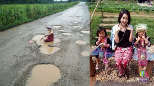ผู้สื่อข่าวได้สอบถามไปยังนางเสาร์แก้ว เนื้อเงินดี ซึ่งเป็นน้าสาวของหญิงในภาพ ทราบว่า หญิงในภาพทำงานอยู่ที่กรุงเทพฯ และได้เดินทางมาสอบ กศน. ที่บ้าน 2-3 วัน เมื่อเดินทางมาบ้านก็มักจะบ่นว่าถนนทางเข้าเป็นหลุมเป็นบ่อ แต่ไม่มีใครสนใจ จึงตัดสินใจไปถ่ายรูปดังกล่าวกับเพื่อนแล้วโพสต์ลงเฟซบุ๊ก หลังจากนั้นก็มีคนในเครื่องแบบเข้ามาสอบถามเป็นจำนวนมาก จึงตัดสินใจกลับกรุงเทพฯ ทันที