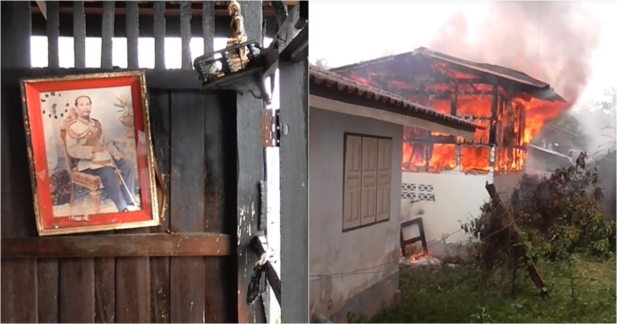 อัศจรรย์ใจ ไฟไหม้บ้านไม้ในชุมชนกลางเมืองอ่างทอง วอดเกือบทั้งหลัง แต่กลับไม่ลามไหม้ พระบรมฉายาลักษณ์ รัชกาลที่ 5 ทั้งที่ฝาบ้านบริเวณนั้นถูกทำลายเกือบหมด