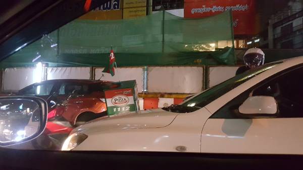 มหากาพย์รถติด 5 ชั่วโมงกลางกรุง ทำสาวหิวจัดทนไม่ไหว ทิ้งรถก็ไม่ได้ ตัดสินใจสั่งพิซซ่ากลางถนนซะเลย