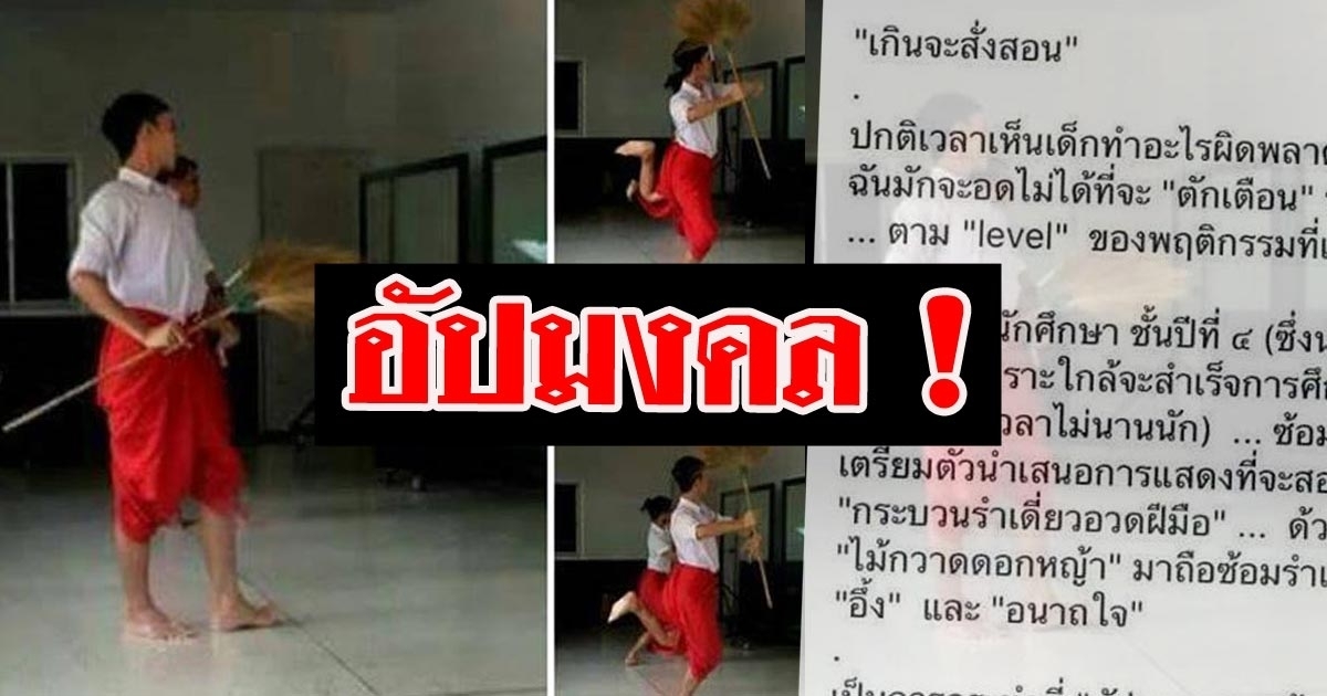 หนุ่มโพสต์จวกอาจารย์แอบถ่ายรูปน้องชายถือไม้กวาดซ้อมรำ แถมด่าอัปมงคล ซัดทำไมต้องด่าขนาดนี้ ลูกศิษย์ทำผิด แทนที่จะบอกดี ๆ กลับเอาไปด่าในเฟซบุ๊กส่วนตัว
