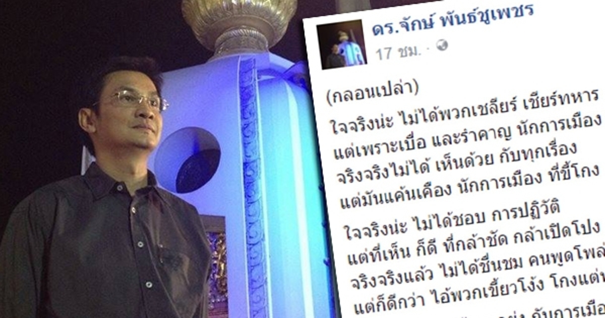 โดยข้อความในเฟซบุ๊กส่วนตัวของ ดร.จักษ์ มีรายละเอียดดังนี้