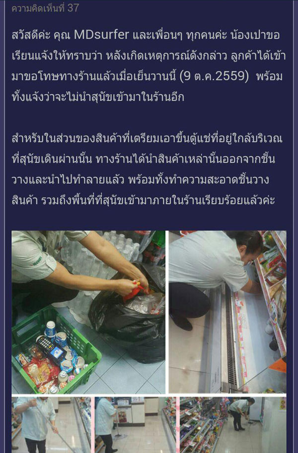 จบ ! เซเว่นอีเลฟเว่น ยัน ลูกค้าขอโทษทางร้านปมนำหมาเข้ามาเลียสินค้าแล้ว พร้อมนำสินค้าสุ่มเสี่ยงทิ้ง ทำความสะอาดชั้นวางใหม่