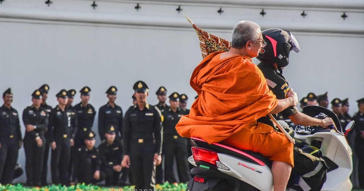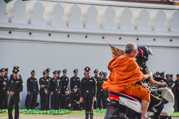 แห่กดไลค์.. ภาพพระราชวชิรดิลก วัดเพชรสมุทร แบกพัดยศ ซ้อนมอเตอร์ไซค์ไปงานพระราชพิธีพระบรมศพ พระบาทสมเด็จพระเจ้าอยู่หัวในพระบรมโกศ