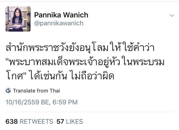 ต่อมา ได้มีการรายงานข่าวจากทวิตเตอร์ผู้สื่อข่าววอยซ์ทีวีว่า สำนักพระราชวังยังได้แจ้งอนุโลมให้ใช้คำว่า พระบาทสมเด็จพระเจ้าอยู่หัวในพระบรมโกศ ไม่ถือว่าผิด