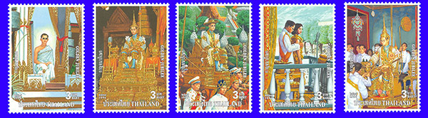 5. ตราไปรษณียากรราชาภิเษกสมรส 4 ชุด ตราไปรษณียากรที่ระลึกเพื่อร่วมบันทึกความประทับใจและร่วมเฉลิมฉลองวโรกาสราชาภิเษกสมรส ระหว่างพระบาทสมเด็จพระเจ้าอยู่หัวรัชกาลที่ 9 และสมเด็จพระนางเจ้าสิริกิติ์ พระบรมราชินีนาถ โดยจัดทำชุดแรกคือตราไปรษณียากรที่ระลึกราชาภิเษกสมรส 15 ปี ในปี พ.ศ. 2508 และครบรอบ 25 ปี 50 ปี และ 60 ปี โดยมีไฮไลท์เป็นชุดพิเศษ คือตราไปรษณียากรที่ระลึก 60 ปีราชาภิเษกสมรส ซึ่งประดับด้วยคริสตัลแท้จากออสเตรีย เป็นภาพ 2 ชุดพระบรมสาทิสลักษณ์ของพระบาทสมเด็จพระเจ้าอยู่หัวภูมิพลอดุลยเดชและสมเด็จพระนางเจ้าสิริกิติ์พระบรมราชินีนาถ ที่ทรงฉายไว้เมื่อครั้งพระราชพิธีราชาภิเษกสมรส พื้นแบคกราวน์สีชมพูและพระบรมสาทิสลักษณ์พระบาทสมเด็จพระเจ้าอยู่หัวภูมิพลอดุลยเดช และสมเด็จพระนางเจ้าสิริกิติ์ พระบรมราชินีนาถในพระชนมพรรษาปัจจุบัน พื้นแบคกราวน์สีเหลืองประดับด้วยวัสดุทางการ พิมพ์เป็นภาพเพชรรูปหัวใจจำนวน 6 เม็ด