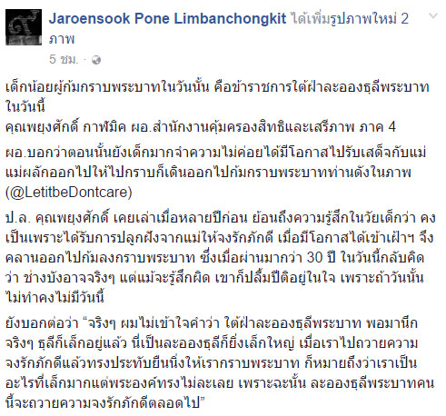 พร้อมข้อความว่า เด็กที่กราบพระบาทในวันนั้น