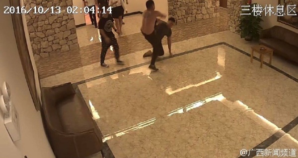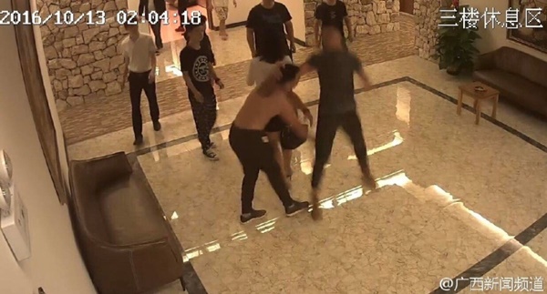 ด้วยความโมโห นายจางจึงไปปลุกกลุ่มเพื่อนที่มาด้วยกัน ให้ไปช่วยจัดการนายเล่ย เริ่มจากช่วยกันถีบประตู ก่อนจะลากตัวนายเล่ยออกมา จากนั้นพวกของนายจางก็รุมกันทำร้ายร่างกายนายเล่ย ทั้งเตะทั้งต่อย จับลากจนมาถึงโถงของโรงแรม จนเกิดการชุลมุนวุ่นวาย กระทั่งมีเจ้าหน้าที่ท้องถิ่นเข้ามาห้าม ทั้งสองฝ่ายถึงยอมยุติศึกในที่สุด