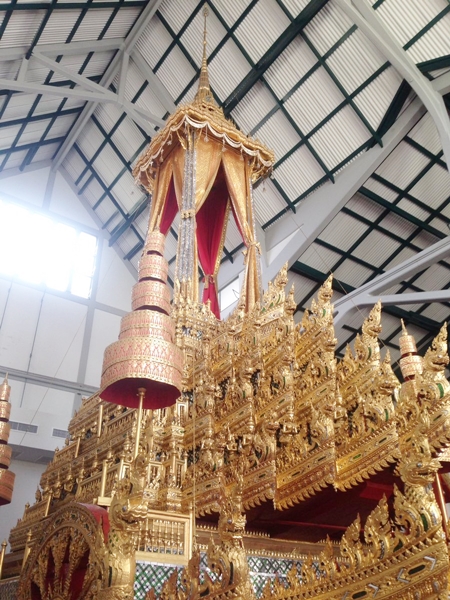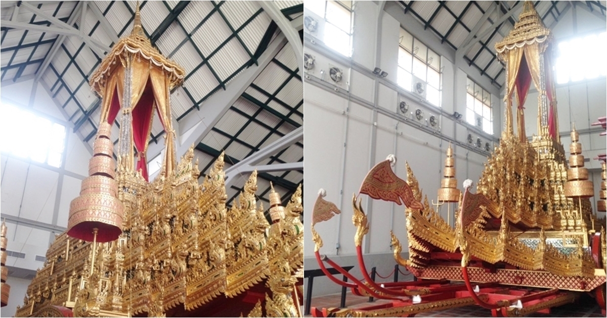 ชมภาพ พระมหาพิชัยราชรถ ที่ใช้ในการอัญเชิญพระโกศพระบรมศพ ซึ่งจะต้องมีการทุบกำแพงปูนโรงราชรถเพื่อนำรถออก