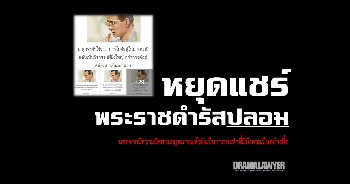 หยุดแชร์ พระราชดำรัสปลอม แอบอ้างนำพระบรมฉายาลักษณ์ ในหลวง รัชกาลที่ 9 มาใส่ให้คนเข้าใจผิด ชี้ถ้าเป็นพระราชดำรัสจริงจะต้องมีข้อมูลอ้างอิงอย่างชัดเจน