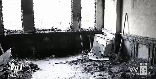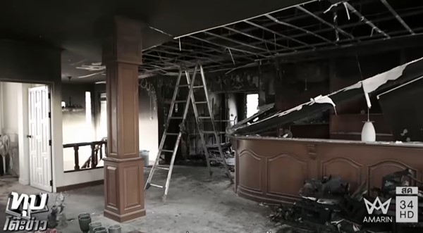 ทั้งนี้ นายอริสมันต์ เล่าว่า ขณะเกิดเหตุในบ้านมีครอบครัวของตน และคนงานอยู่รวมกัน 10 คน โดยตนกำลังนอนพักผ่อนอยู่ชั้นล่าง ต่อมาได้ยินเสียงเอะอะโวยวาย และมีกลุ่มควันลอยฟุ้งในบ้าน จึงรีบวิ่งขึ้นไปดูพบว่าที่ห้องพระบนชั้น 3 ตรงแท่นบูชาพระมีไฟลุกไหม้จากเทียนไฟฟ้าและลุกลามอย่างรวดเร็ว ตนจึงรีบใช้ถังดับเพลิงไปดับและชาวบ้านข้างเคียงก็มาช่วยกันดับเพลิงดังกล่าว