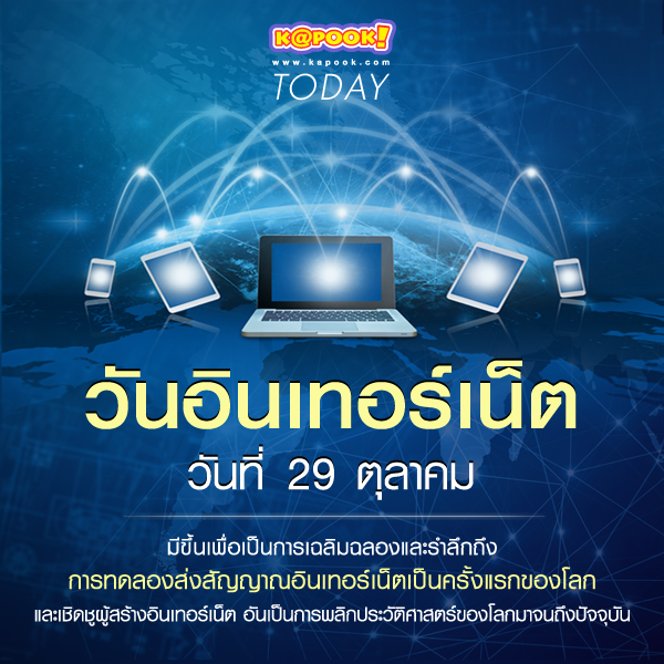 แต่เราเคยรู้บ้างหรือไม่ว่า "อินเทอร์เน็ต" เกิดขึ้นได้อย่างไร ดังนั้นเนื่องในโอกาส วันอินเทอร์เน็ต (Internet Day) วันที่ 29 ตุลาคม กระปุกดอทคอมก็ได้นำประวัติการถือกำเนิดขึ้นของ อินเทอร์เน็ต มาฝากให้เราได้ติดตามกัน