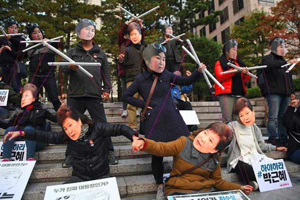 ประธานาธิบดีปาร์ค กึน เฮ แห่งเกาหลีใต้ ถึงคราวฉาว ถูกแฉปกครองประเทศภายใต้อิทธิพลเพื่อนซี้ซึ่งเป็นคนทรงเจ้าเข้าผี แถมเอื้อประโยชน์ทางการเงินกันด้วย ประชาชนเรือนหมื่นลุกฮือประท้วงเรียกร้องให้ลงจากตำแหน่ง