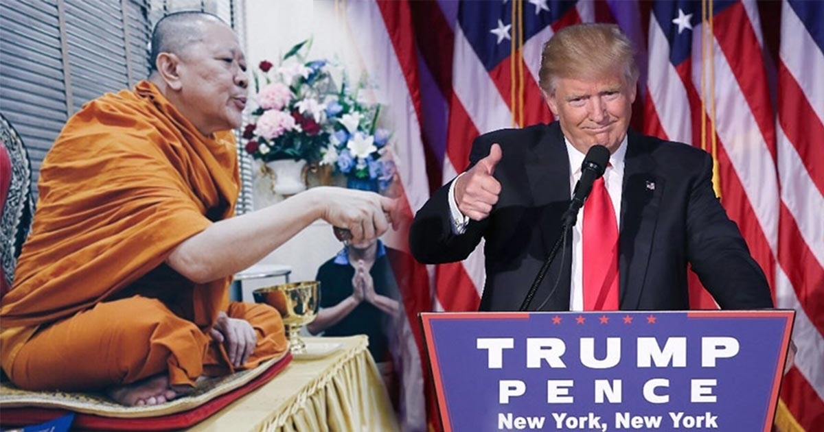 กลายเป็นประเด็นที่ถูกแชร์ต่อกันอย่างมากในโลกออนไลน์ หลังจากเฟซบุ๊ก วาสนา นาน่วม ของนักข่าวสายทหารชื่อดัง ได้เผยภาพยันต์สีม่วงผืนหนึ่ง ซึ่งประกอบไปด้วยคาถาศักดิ์สิทธิ์ และข้อความภาษาอังกฤษ 4 คำว่า "change (การเปลี่ยนแปลง), innovation (นวัตกรรม), idealism (อุดมคตินิยม), freedom (เสรีภาพ)" โดยอ้างว่า พระพรหมมังคลาจารย์ หรือเจ้าคุณธงชัย ผู้ช่วยเจ้าอาวาสวัดไตรมิตรวิทยาราม เป็นผู้เขียนให้โดนัลด์ ทรัมป์ จนได้ชัยชนะเป็นประธานาธิบดีคนที่ 45 แห่งสหรัฐอเมริกา ซึ่งก่อนหน้านี้เป็นที่ทราบกันดีว่า เจ้าคุณธงชัย เป็นเกจิอาจารย์ชื่อดังที่เคยเขียนยันต์ไปไว้ที่ห้องแต่งตัวสโมสรฟุตบอลเลสเตอร์ซิตี้ จนทำให้ทีมคว้าแชมป์พรีเมียร์ลีกมาแล้ว