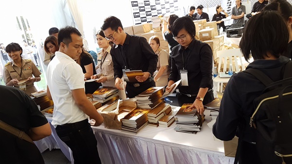 ภาพประชาชนรอต่อคิวรับหนังสือ รวมพระบรมราโชวาท พระราชดำรัส-พระบรมฉายาลักษณ์ หาชมยาก ของพระบาทสมเด็จพระปรมินทรมหาภูมิพลอดุลยเดช